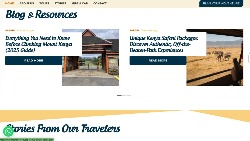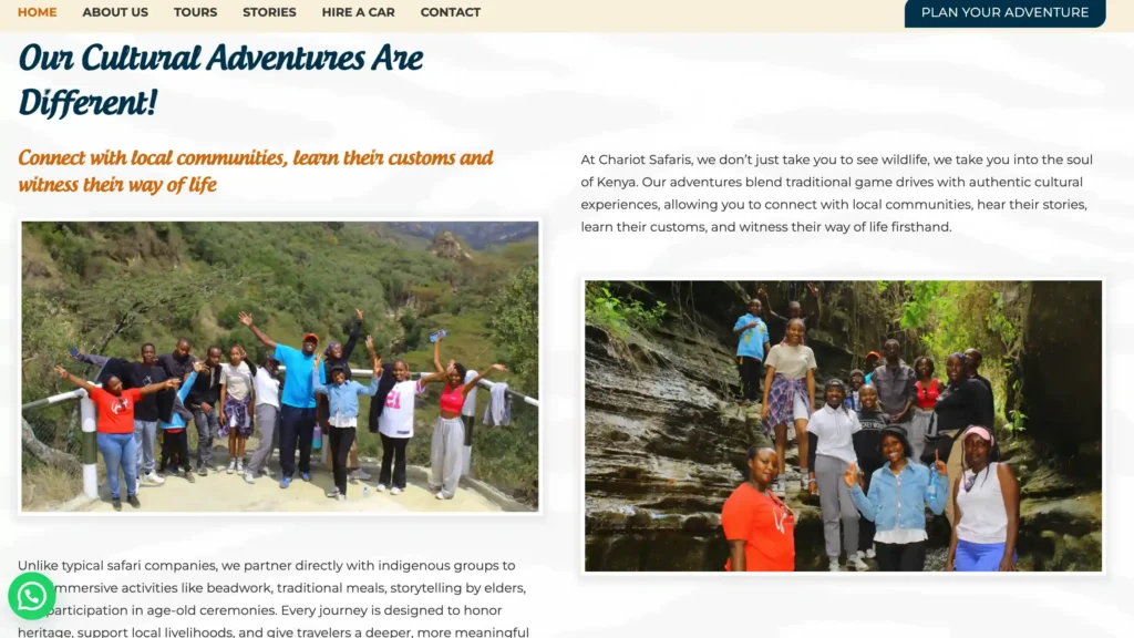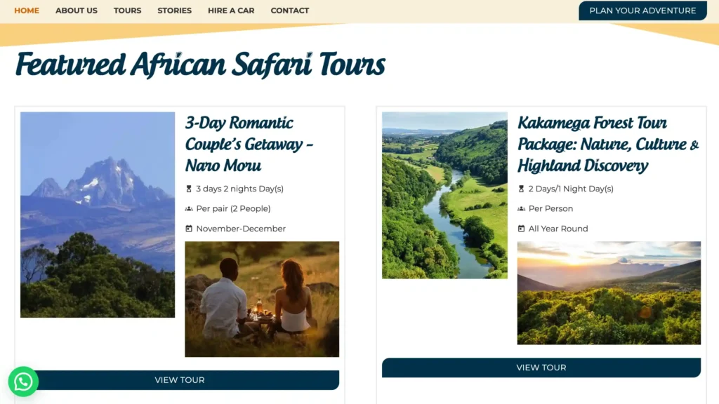 Strong search rankings for “authentic Kenya safari tours” driving consistent international inquiries. Outstanding customer satisfaction with travelers praising authentic cultural immersion.